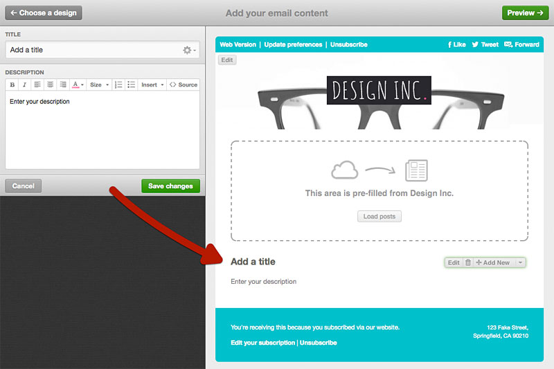 - Click Done to close the editing pane and Preview (top right) for a full-page view of the campaign.
